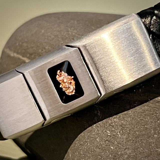 Made from genuine cow’s leather, the bracelet features a brushed stainless steel magnetic clasp, securely pinned in place for strength and security.