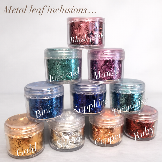 Choose from a range of base colours, metallic leaf shades, and inclusion styles. Ashes can also be discreetly concealed for a subtle tribute.