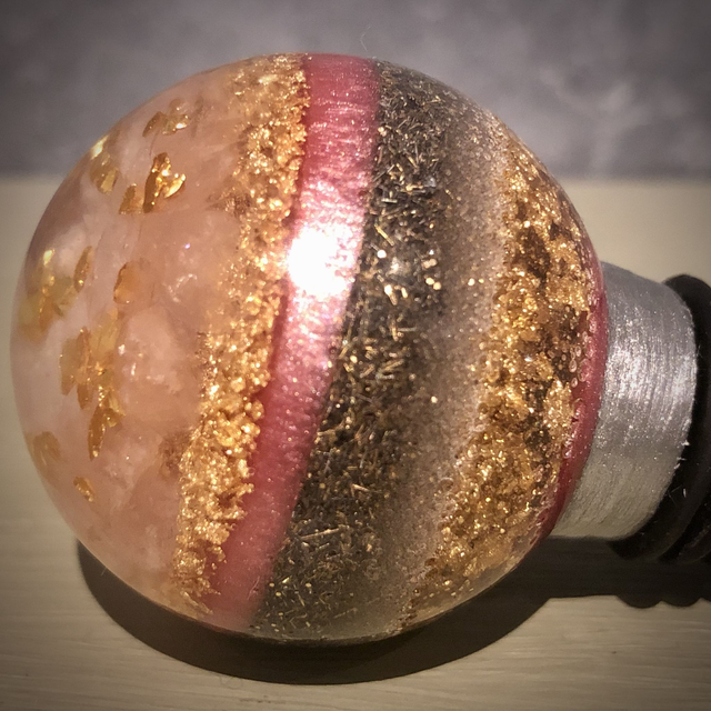 Oh my days, such a beautiful design. Made from resin, this gorgeous bottle stopper encases one of the most beautiful crystals ever discovered - Rose Quartz.