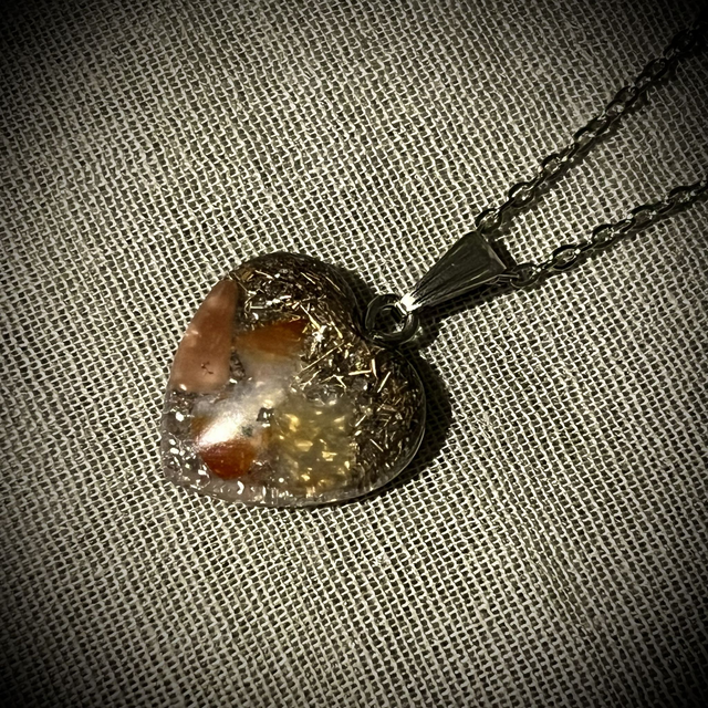 Crystal Energy Heart Pendant with Carnelian/metal shavings (small)