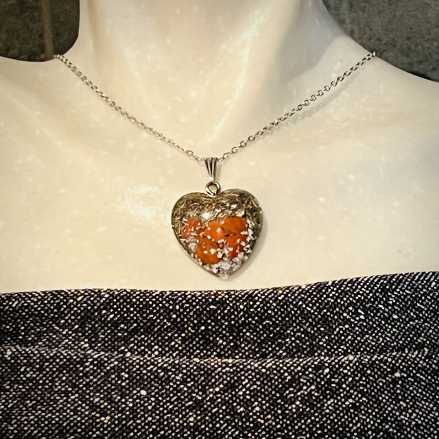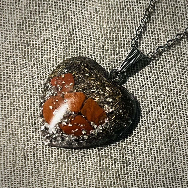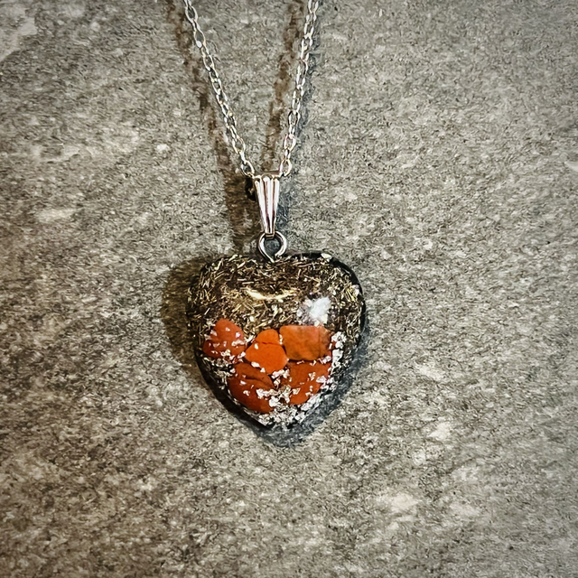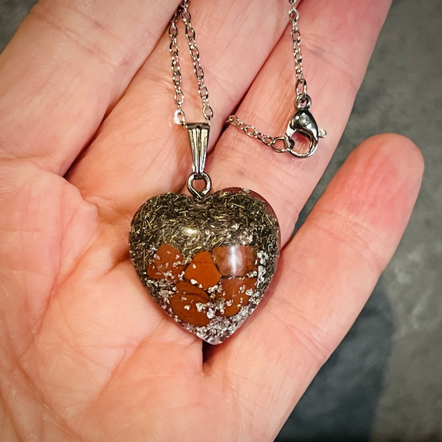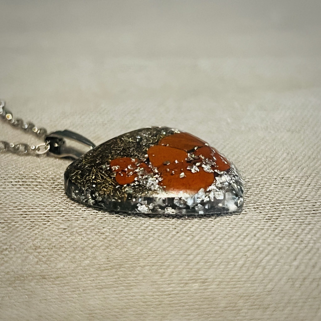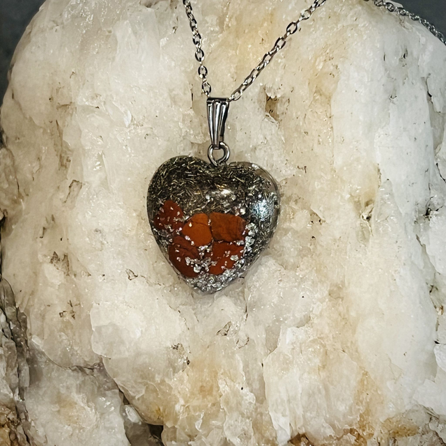 Crystal Energy Heart Pendant with Red Jasper/metal shavings (medium)