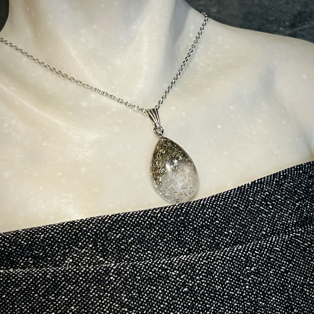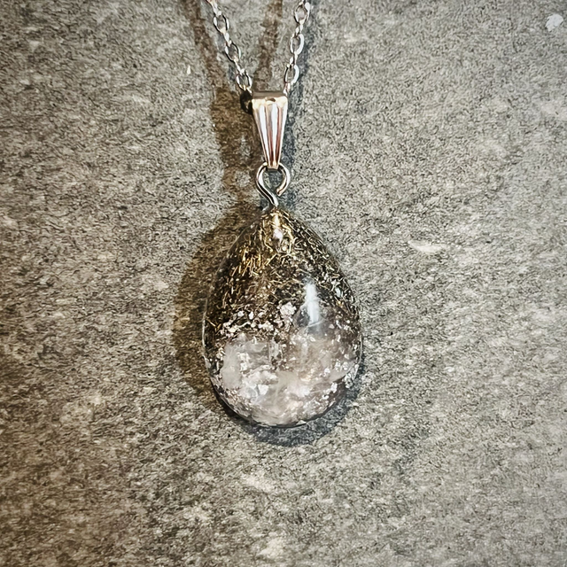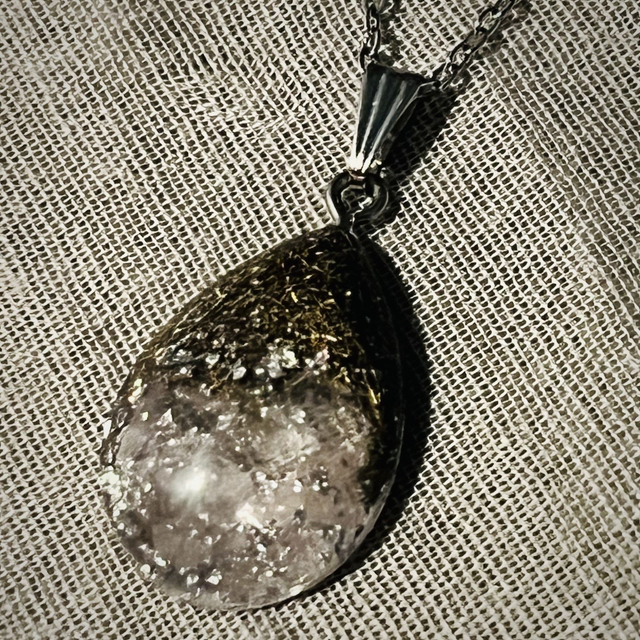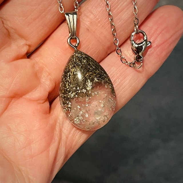 I just love working with Rose Quartz and this gorgeous resin teardrop pendant has been an absolute joy to make. With the beautiful subtle pink hue, I have also encased metal shavings to add to it's elegance and to catch the light.