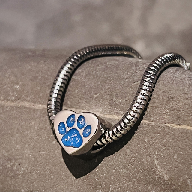 A beautiful and heartfelt way to honour the memory of a beloved family pet, these Paw Print Heart Charms are designed to keep them close to your heart. Each piece is carefully handcrafted and can encase ashes in a way that feels personal and meaningful to you.