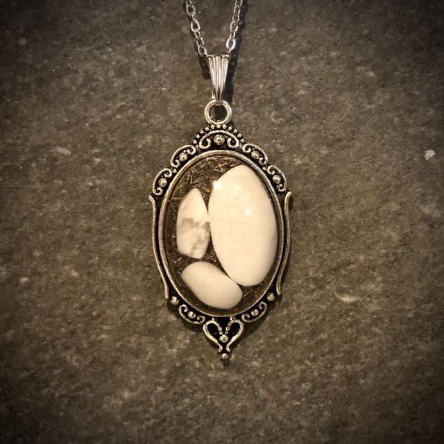 White Howlite Crystal Energy Pendant - Classical Design